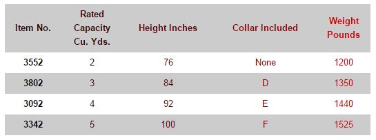 All Dual Gate, Vertical Front Floor Hoppers have 48` X 60` top opening. Item No. 3552 is Basic Hopper. Other item numbers are item 3552 plus extension Collars, items D, E, or F.