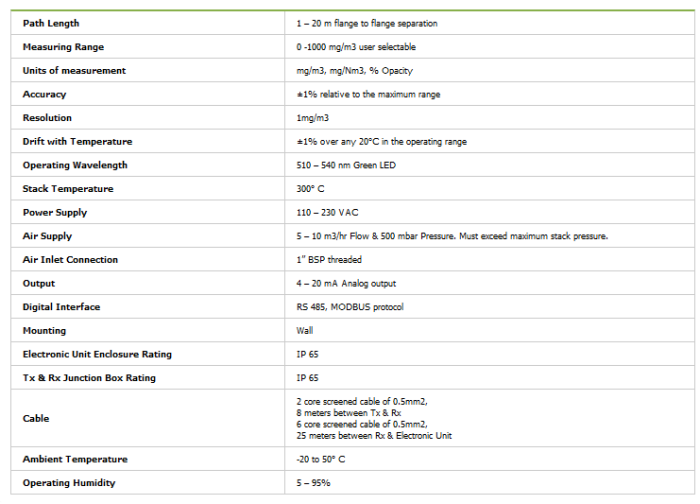 - Unit programmable in mg/m3, mg/Nm3, % Opacity