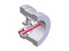 The disc is in cast or forged steel. The attachment to the hinge pin allows the rotation and a small translation along the flow. The seating surface is ground and lapped. An integral over-travel stop for the discs is incorporated.