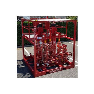 The DUAL POT SAND FILTER is designed to remove solid particles from well effluent Located after the Flow Head, it protects downstream equipment against erosion and solids accumulation in tho separator. Dual pot configuration is mandatory for a safe solids removal without flow interruption. Tho FCE dual pot sand filter design (2-Stagc Filtration) combines centrifugal separation and mechanical cutout providing improved performances against conventional design. Each pot is fitted with a removable wear sleeve that protects the inlet area against erosion. Each unit is fitted with a flushing manifold that allows rovers flow flushing and solids transportation toward a storage facility. 50 to 800-micron screen are fully interchangeable. Tho FCE dual pot sand filter unit offers an crgonomic and compact arrangement that improve significantly crane operations, field figging-up, trailer mounting and fast screen removal.