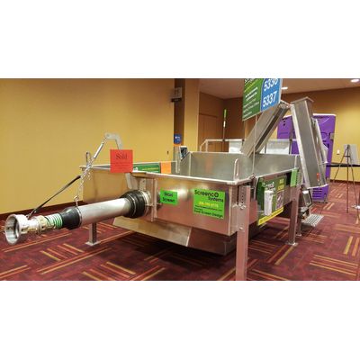 US PATENT #D757,889 Dual Screen Design. Screen includes all the same great features as the rest of the screening systems line. Includes 20.5 square feet of screening area. The system allows for gravity off load of 500 GPM through a custom dump hose that telescopes and pivots latterly, with a 6” rear cam outlet. A fan spreader deflects waste down onto the screen, making the front screen virtually self-cleaning. The patented Dual Screen Design is unique, totally non-mechanical, and uses gravity to separate the trash from the waste stream. The standard Screen features all aluminum construction with stainless-steel 3/8” gapped bar screens on opposing angles.