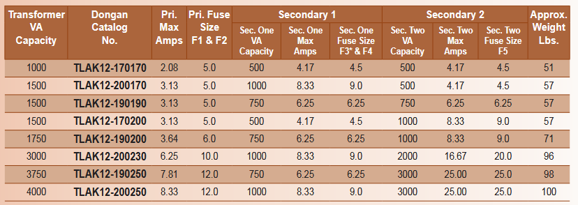 Dongan - Model TLAK 12 Series -Dual Secondary Transformer