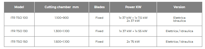 The TSO dual shaft openers are shredding machines with special blades capable of reducing the volume of electronic waste prior to proceeding with the subsequent processing phases, or opening materials pressed into bales. Like on the dual shaft shredding machines, the cutting chamber’s design allows for the quick maintenance and replacement of the parts subject to wear (blades, spacers, and counter-blade), thus reducing operating costs and downtime.