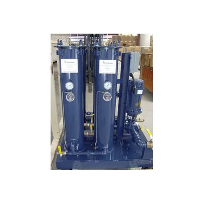 Usually used in applications of Hydraulic oil that see large quantities of dirt within their process such as coal pulverizers, quench oils, or steel mill hydraulics. The dual stage allows you to reach your cleanliness levels by serial flow through 2 differently rated filter medias. Based on your particle distribution results, these filters can be specified to optimize cleanliness and reduce filter replacement frequency. Standard features include wing-nut closures, DP and pressure gauges on each filter vessel, interior and exterior epoxy paint, inlet/outlet hoses, and ball valves on all ports. Various filtration flow rates are available as is also the duplex series option for filter change-out without stopping the filtration process.