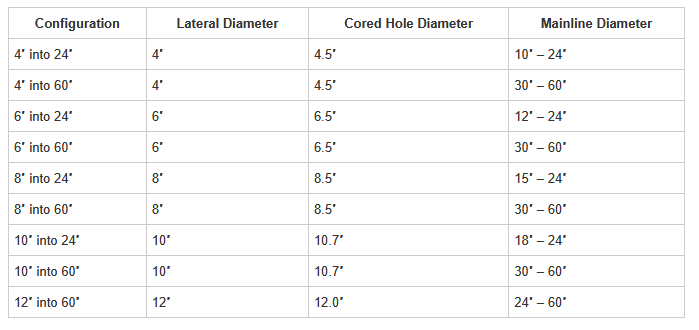 GOLDFLO Tap Tees (GFTT) are fabricated fittings used for lateral connections into dual-wall pipe. They are designed for field installations that do not require a section of mainline pipe to be removed and replaced by a fabricated tee. Lateral pipe can be connected directly to the GOLDFLO Tap Tee with an external snap or split coupler fitting. When properly installed, GOLDFLO Tap Tees create a soil-tight connection.