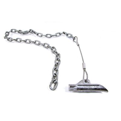 - 68 ATC: holding power 1100 lbs. (500 kg), 12" of 3/16" diameter wire rope / cable & 4` of 1/4" galvanized steel chain.