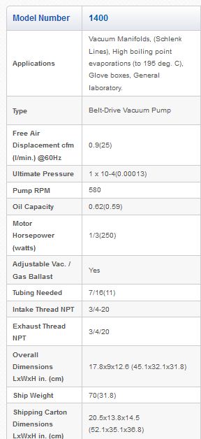 DuoSeal Vacuum Pumps are known for their ruggedness world-wide. These pumps have large oil reservoirs to dilute contaminants. Low pump rpm to reduces friction and wear while minimizing reservoir temperature to lessen chemical reactivity. Pump can be ordered with an optional exhaust filter to control oil mist.