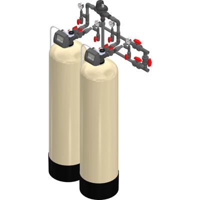 Excalibur Water Systems’ Duplex Alternating Turbidity Filters utilize two standard control valves integrated with one fully ported motorized alternating valve (MAV) to allow one unit to be in regeneration or stand-by at a time while the other unit is in service. This system provides a continuous supply of filtered water with the control valves indicating which unit is online and in stand-by operation. Its internal non-corrosive single piston & patented 1-piece compressible seal/ spacer stack assembly allow it to be hydraulically balanced. The MAV has a sight glass that allows you to view the position of the valve to know which filter is online and which is always on stand-by. Excalibur Water Systems Duplex Alternating Turbidity Filters come in various valve sizes/flow rates.