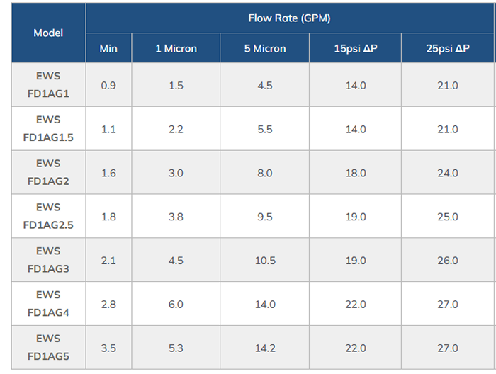 - Flow Rates: 0.9 - 18 GPM