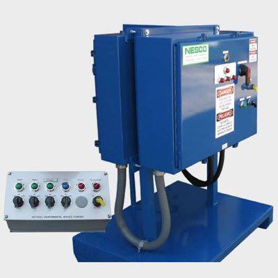 The NESCO DustPro D Series features a 200 PSI (15 Bar) pump module that is controlled via a programmable logic controller which can be easily interfaced to plant control systems. The unit is equipped with dual redundant pumps for operating and standby that can be switched online. The DustPro D also contains rugged control valves, strainers, and heavy-duty brass piping for industrial use. The unit has fully automatic operation and can be equipped with air and glycol purges for cold weather operation. For portable operation, it can be mounted in an insulated trailer with heater, vent, fluorescent lighting, and all the necessary utility and hose feedthroughs. The NESCO DustPro D series can be customized to accommodate any application. This includes additional water filtration, cold weather options, special control features, and additional alarm capabilities.