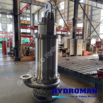 Hydroman® Duplex SS Submersible highly acidic slurry pump is a heavy duty submersible slurry pump to resist a variety of acids, alkalies, or flammable liquids such as phosphoric acid, acetone, or methyl ethyl ketone, etc., and submersible slurry pump in stainless steel is also builded in an agiator, and an agitator for slurry pumps delivers kinetic energy (energy of motion) to solids surrounding the pump intake, re-suspending them into a fluid state which would have otherwise buried and starved the pump of liquid. So submersible agitator pumps with stainless steel are very ideal for corrosive and aggressive liquids.