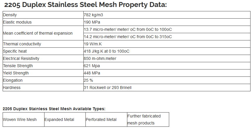 AHSModel 2205 -Duplex Stainless Steel Mesh