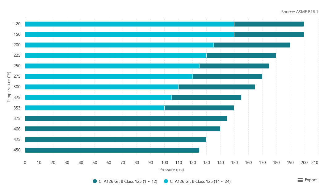 - Cast Iron - ASTM A126 Gr. B - Class 125