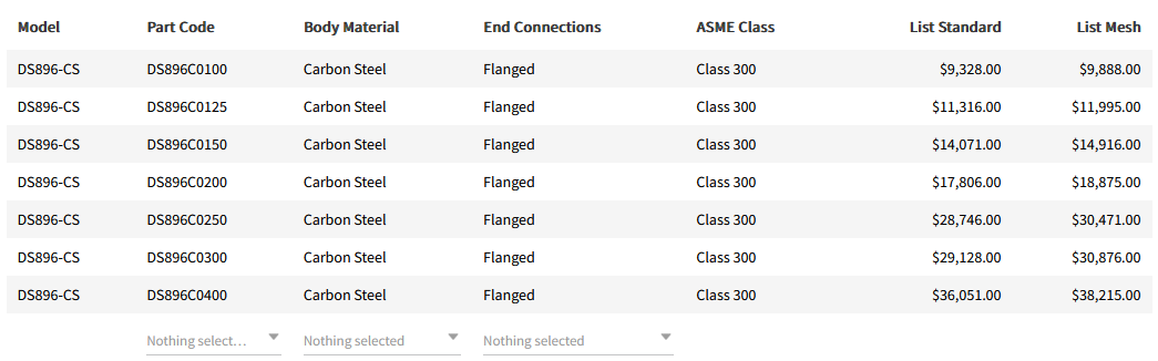 - ASME Rating: Class 300