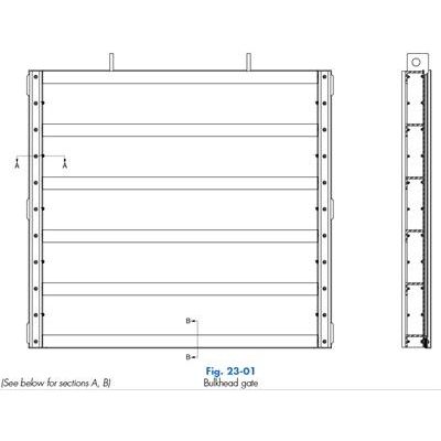 Bulkhead Gates SERIES 23 is used to shut off water flow in structures to enable maintenance or repairs on other equipment or for emergency purposes (Figure 23-01). They are also used to divert a flow of water in different areas of a plant. Bulkheads are also referred to as Stop Shutters or Intake Gates and can be stacked one over the other like Stop Logs to limit the weight of the Bulkhead for manipulation.