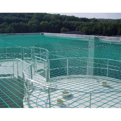 Fall arrest safety nets designed according to the EN 1263-1 type S standard. The nets are crafted from knotless high-tenacity polypropylene with a yarn thickness of 5mm. They feature a border rope with a diameter of 11mm and a reinforced rope edging, ensuring a minimum breaking strength of 30kN. These safety nets can be custom made, though standard dimension nets are available from stock for immediate use. They are essential for construction sites to prevent serious injuries from falls. Apart from the nets, there are related products such as lashing ropes, fastening accessories, net storage bags, safety harnesses, and various overlay nets and tarps.