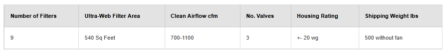 Fine Fiber Technology provides the highest filtration efficiency and longest filter life. Filtrations efficiency is exceptional at 99.99% on 0.5 micron dust particles. Easy filter change out for quicker maintenance. Continuous-duty, pulse-cleaning design for continuous operations. Lower operating pressure drop reduces operating costs. Optional Combination Starter Fused Disconnect Motor Starter.