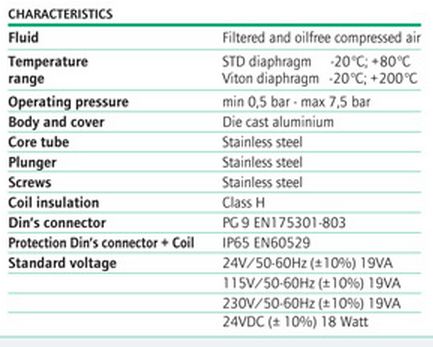 - Operating Pressure : min 0,5 bar - max 7.5 bar