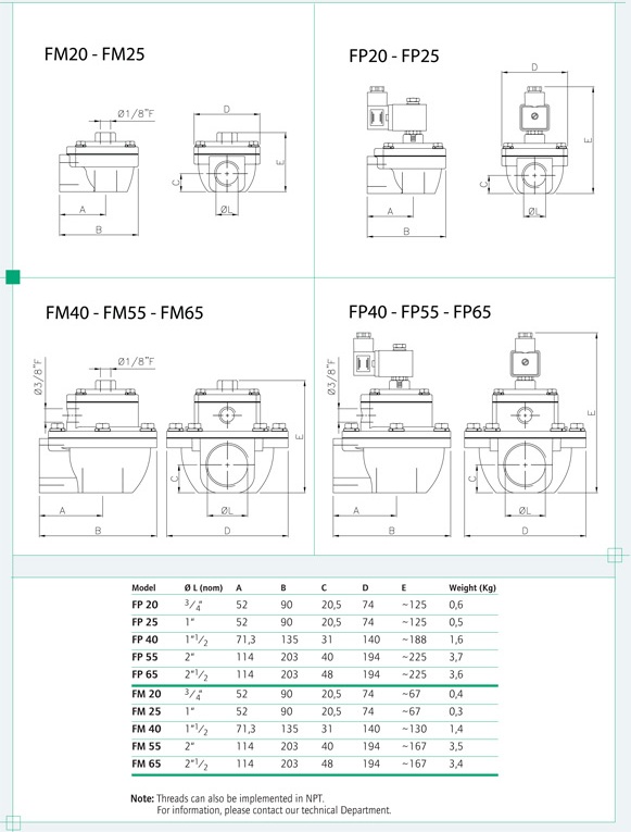 - Models : FP:Integral Solenoid Pilot Version, FM: Remote Pilot Version