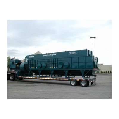 60,000 CFM @ 13” wg. 7 @ 20” Inlets. Dual Wheel Fan. Class “C” Spark Resistant. Diesel or Electric. A transverse mounted, dual wheel tan allows for an extremely powerful dust collector with a minimized footprint. The advanced inlet design slows down incoming air lor superior dust drop out. Two extra inlets provide added versatility at Ih. job site.