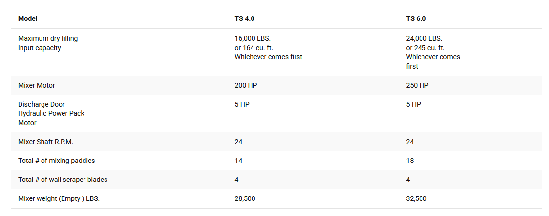- Two (2) 6″ square, counter rotating steel mixing shafts