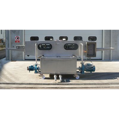 Entirely in stainless steel. Suitable for any container. Low water consumption. Double filtering system. Removable nozzle arms. Functional monitoring systems. Available on wheels for easy handling.