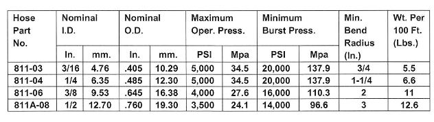 Recommended for: Medium pressure hydraulic and pneumatic systems. Meets or exceeds SAE 100R8 requirements. For pneumatic or gaseous systems use perforated (pin-pricked) hose.