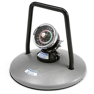 The Brakemeter / Dynometer is a hand-made precision instrument that mechanically measures both deceleration and acceleration. The instrument consists of a finely balanced pendulum, free to respond to any changes in speed or angle, working through a quadrant gear train to rotate a needle round the dial. The dial is black with silver white graduations and has a linear length of 5 1/2 inches (114 mm). The unit is filled with a special fluid which damps out all vibration. Other than a calibration every 2 years, which is carried out by Bowmonk, no maintenance is necessary.