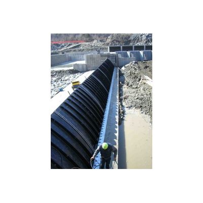 The spillway gate system is attached to the foundation structure by anchor bolts and clamps. There are an equal number of air bladder and gate panel sets. The individual steel gate panels and air bladders are generally fabricated in widths of 3.0m or 5.0m for systems up to about 2.0m high. Higher gates use various standard width air bladders such that the height/length ratio is always less than 1.0. Each air bladder is connected to the air supply pipe.