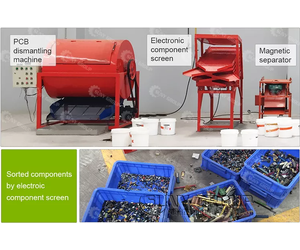 Suny Group is specialized in providing Complete E Waste Recycling Plant. Turning E-waste into treasure through different equipment not only solves the problem of environmental pollution, but also realizes resource recycling and reuse, and can also obtain high economic benefits.PCB Components Dismantling Machine is used to remove the electronic components on different PCB boards, The drumar made of 6mm thickness #45 steel and its own special technology, which have the characteristics of high temperature resistance, abrasion resistance, safety and reliable, stable performance, high precision, durability.