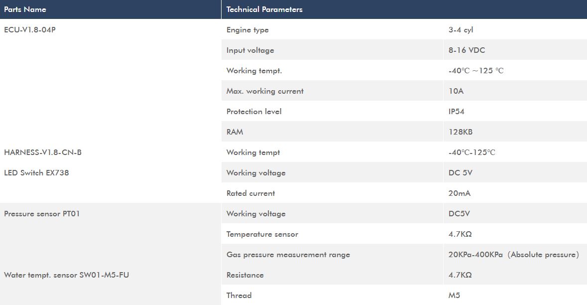 V1.8 Smart System is a gas sequential injection gas supply system. When the system works, the gas ECU takes the fuel injection signal from original vehicle as the basic signal, and collects the parameters of the engine cooling water temperature, gas pressure and other parts at the same time to decide the final gas injection time and gas rail injector supply gas to the corresponding engine cylinder. When the switch is in the gas position, the gas ECU will automatically detect the conversion conditions which are already stored in the ECU. When the condition is met, system will switch to the gas. At this time, the gasoline injection nozzle is cut off, and the gas system ECU drives the gas rail injector to start working. The system is suitable for 3-4 cylinder of naturally aspirated and turbocharged engines, meet Emission six Requirement.