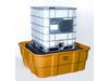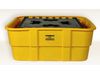 The Eagle IBC Containment Unit is a 100% (yellow) polyethylene containment tub with heavy duty (black) polyethylene platform. More chemical resistance than an steel frame IBC, features a 400 gallon secondary spill capacity. The extra wide platform shelf accepts IBC units up to 50" square. 10,000 pound load capacity with a drain.