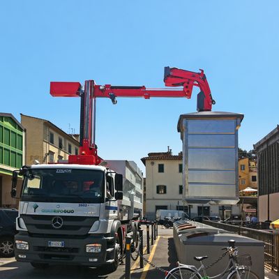 Easy is an innovative lifting system at the service of your city, equipped with a mono operator bilateral automated procedure for the separate collection of urban solid waste in ad-hoc manufactured stationary containers. The peculiarity of the mechanism is the “F90” hooking device, which allows the entire range of Nord Engineering containers to be hooked and emptied in totally safe conditions on board the vehicle, by the operator who controls the work through a monitor.