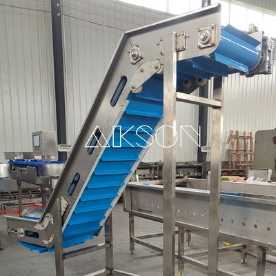 Briefly describe the features of easy-to-clean conveyor belts and weight sorters - Frozen disc-shaped products, such as chicken feet, trotters, chicken wings, etc.. Are crushed by a water bath thawing machine, and transported to a weight sorter for material classification by an easy-to-clean belt. For example, grading chicken feet, an assembly line. Thawing output of 2 tons per hour, each chicken feet weighs about 35 grams. Requires 8 PCS weight sorting machines.