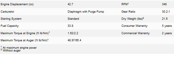 Powerful 42.7 cc engine makes this earth/ice auger a reliable tool for any digging/drilling operation.