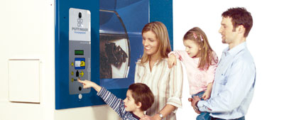 ECO internet from Pöttinger is the intelligent disposal concept that has a number of technical, environmental and economical advantages for its users: Fair, pay-as-you-go invoicing – EU calibrated scales +/- 0.1 kg. Reduced transport costs due to waste being compacted approxi - mately 5:1, saves time-consuming emptying of individual dustbins at every house. No smells - tidy appearance. Daily statistics and reports avail able over the Internet. Container level warnings and malfunction alarms sent by SMS and/or e-mail. Invoicing by charge card or pay-asyou- go card