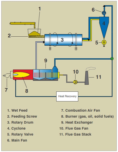 The EcoDry system consists in drying in a sealed steam cycle with an integrated thermal oxidation. Separating the chimney gas from the drying gas has the indirect drying advantages (for instance, no contact between the chimney gas and the material to be dried, free fuel choice), as well as the direct drying ones, combining both to obtain the best advantages.