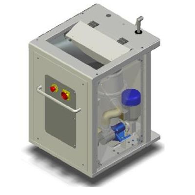 The unit is made up by a stainless steel cabinet containing a commercial food waste disposer fitted with a proper design “intake hopper” to feed food waste inside the disposer and an electrical control panel which runs the whole unit by means of a suitable PLC working software which informs the operator about any possible failures or malfunctions of the unit.