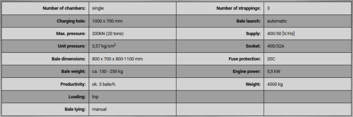 - Daily/weekly/monthly statistics – the readout of the number of finished bales with their weight estimation