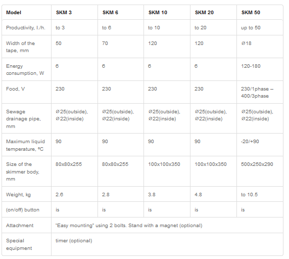 LENCH SKIMERS — mechanical equipment for removing oil, grease and oil products from the surface of water, coolants, emulsions, washing solutions, wastewater. The principle of operation of BELT SKIMERS for collecting oil products: Oil, fat, oil products on the surface of the liquid stick to the outer surface of a special collector tape. This collector tape, together with oil, fat, oil products, is drawn into the oil trap. Oil feeders remove contaminants from the surface of the collector strip.