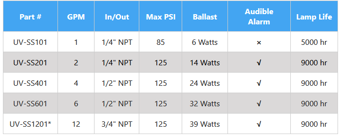 Puregen - Model UV-SS -Economy Stainless Steel UV W/LED Indicator