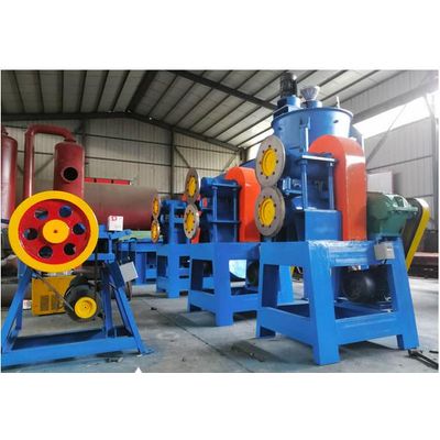 Through the feeding device through two sieve beds filter out the fine material and then by magnetic roller, magnetic separation of a steel wire, Preparation of 10 mesh fineness of the purity of-40mesh powder(fineness optional).This processing technology,there is no air pollu-tion,no waste water,low operation cost.lt is the best equipment to produce waste tire rubber powder.
