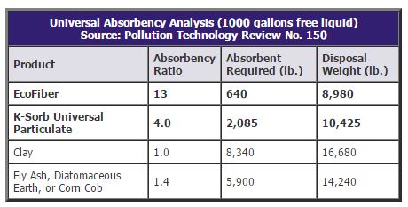 A highly absorbent cellulose product used to solidify liquid waste and stabilize sludge for transportation and disposal on remediation projects such as tank cleanouts, lagoon dredging, and pond closures. This specialty fiber is ideal for absorbing free liquid in roll-off boxes and can be disposed of as a solid waste. EcoFiber also satisfied EPA test requirements (i.e., paint filter and TCLP tests) for waste prior to disposal. EcoFiber can absorb an amazing 13 to 17 times its weight in water and/or oil, meaning less clay, corn cobs, rice hulls, and lime kiln dust. Not only does EcoFiber reduce the amount of waste requiring disposal up to 46%, it is made from 98.5% recycled fiber that otherwise would go to a landfill. Furthermore, this product has 8,484 btu/lb and burns to less than 3% ash, making it ideal for incineration projects. Inorganic absorbents such as clay, fly ash, and lime kiln dust do not burn which limits disposal options to more costly methods. EcoFiber is available in 30 lb. and 40 lb. compressed bags measuring 18 inches x 22 inches x 12 inches.