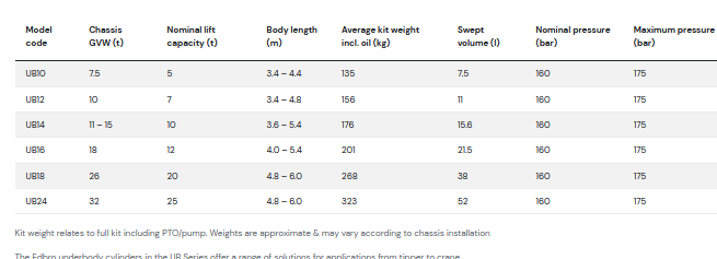 High performance underbody telescopic hoists for tipper and crane applications.