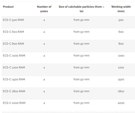 In the case of the versions with the rotor embedded centrically there is a high risk of damage of the conveyor by a ferromagnetic particle caught by magnetic field of the rotor even also at the roller itself. That is why there is a need of noting rigorously separation of Fe particles before the entrance of the material on the conveyor strand especially at the centrical versions. Use magnetic drum, roller, plate or a combination of these to separate the unwanted metal particles