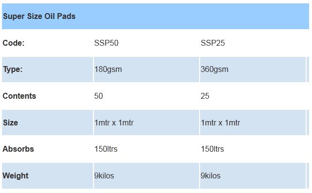 These are primarily used to float on oil contaminated waters, to absorb oil but not the water, these will float even when saturated with oil. Conveniently sized sheets are ideal for the cleaning of industrial tools, machinery and general spill control.