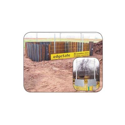 Edge protection for sheeted excavations fitted with a Kick board to prevent debris dislodgment.