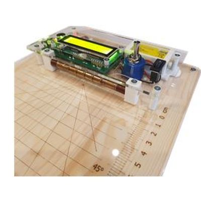 The main elements are mounted at plywood board with acrylic surface. At this board it is marked the following things: the distance (cm) and angles. It allows for demonstration of many education experiments which are describing for example radiation attenuation with distance.