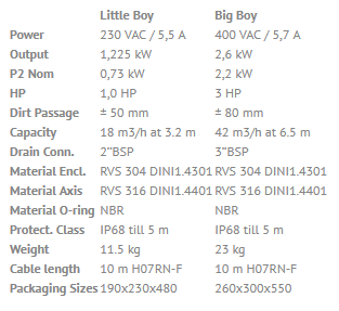 - Pump is without water level sensor (option) and can be supplied with 3” cast iron pump guiding system and 3” ball valve