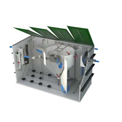 It is a compact wastewater treatment plant, working on the principle of an aerobic cleaning process, so when functioning correctly, it solves the community's needs entirely without unpleasant odour and noise.